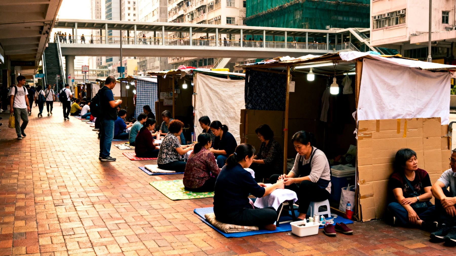 Secondo quanto dichiarato da Fu Chit-ho, funzionario senior del Dipartimento dell’Immigrazione, i tre arrestati avrebbero allestito piccole postazioni improvvisate utilizzando cartoni o tende per offrire servizi di massaggi e trattamenti estetici per le unghie ad altri lavoratori domestici. Si tratta di un fenomeno che emerge durante i giorni di riposo, quando migliaia di collaboratori domestici, prevalentemente filippini e indonesiani, si riuniscono negli spazi pubblici della città per socializzare.